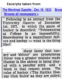 We find that many of today’s popular conclusions about Ice Hockey history come from two core ideas. Both been around for quite some time. We can date the first core idea to as early as 1899: all forms of “hockey” that preceded Montreal are treated as the same and are very loosely described as backward games devoid of rules. The second core idea had been at least several decades in the making. It suggests that Ice Hockey was somehow born in Montreal in 1875, two years after we know Halifax ice hockey was introduced there in 1872 or 1873.