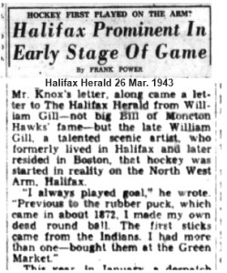 None of this matters, frankly. In 1943, William Gill, a contemporary of Creighton and a painter of some reputation, was quoted in the Halifax Herald as saying that the rubber puck had been introduced in Halifax “about 1872.”