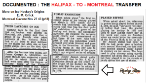 In that moment, Halifax, Nova Scotia, attained immortal status in the history of Ice Hockey, because of what Montreal ice hockey would go on to become in the 19th century’s three remaining decades. Montreal’s success became Halifax’s success, and their great continued successes went on well past the time of this Halifax-to-Montreal transfer.