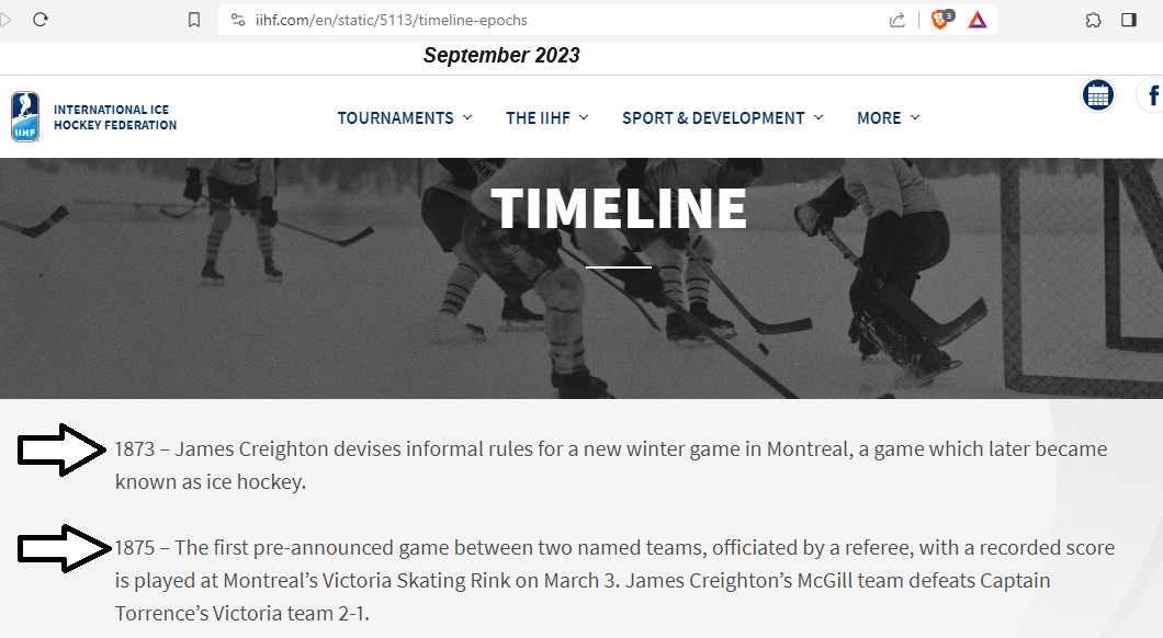 Earlier, we said that many of today’s dominant theories ignore, overlook, downplay, or stereotype the contributions of our first two Stars. This is one such example, despite the IIHF’s noble intentions. They seem to have borrowed from a made-in-Canada way of thinking that has been decades in the making, and this is one of its more concerning results. Nowadays, Ice Hockey’s global governing body continues to write “Halifax” out of early history completely, as seen on their timeline-epochs page.