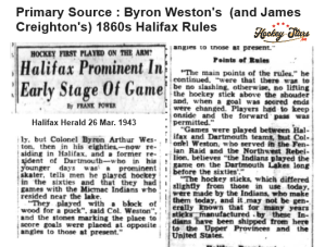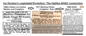 Or, some Halifax Hockey Club members may have gotten involved. Several Creighton orders suggest this, according to the source article where Weston’s Halifax’s rules appear. Someone like Weston or Gill tells Cope and the other Mi’kmaq players. The Halifax Hockey Club crowd must have become aware of these Montreal developments from very early on.
