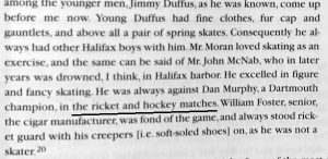 In order to best understand 19th-century Ice Hockey’s dominant player, we must consider two things. We must ask how good players can get using Acme skates and Mi’kmaq sticks after ten years. And we must ask how good players can get with 19th century gear that consists of old school skates and non-lineal sticks. The degree of difference should explain why we shouldn’t lump Halifax’s game in with all other pre-Montreal versions of “hockey.”