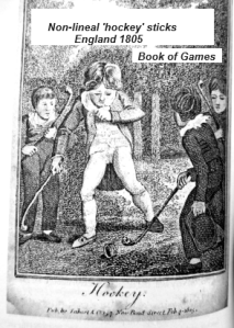 This is the design that we are told the Canadian settlers’ sticks slowly evolved towards. The stick’s elements will vary from one place to the next, but all six elements will tend to be preserved once their collective advantages are noted. The flat thin blade enables a user to pass or shoot forehand and backhand in any direction and to trap a puck on a dime. It radically improves a player’s ability to elude opposing players while enabling teammates to work together so that they “protect and direct” pucks at exponentially higher levels of efficiency. None of these things are possible with non-lineal sticks, as the “new” evidence so plainly reveals. We must take care to not paint early Canada with the same brush. Slow evolution did not occur everywhere “hockey” was played. It seems much more likely that the flat thin blade abruptly ended all such evolutions wherever it appeared, quickly, if not immediately. Ice Hockey is predicated on the flat thin blade.