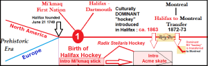 The moment is what secures Halifax’s great lineal distinction, among other things. Only Halifax hockey was transferred to Montreal, to the exclusion of all other “hockey” or hockey-like games that were played during that era. We alluded to why this is necessary to say, owing to the strength of the first core idea in today’s world, where Halifax ice hockey gets equated with literally all other versions of pre-Montreal ice hockey, and then lost to the zeitgeist for not being worthy of special mention.
