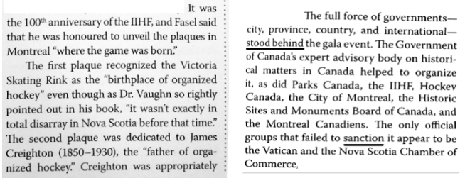 After all, there is a big difference between supporting the general idea of enshrining Creighton and the VSR and agreeing with the IIHF’s specific conclusions about how best to describe them. Then there’s the inconvenient fact that none of these descriptions can be literally true, as all informed historians know. The question becomes: Is figurative usage acceptable?